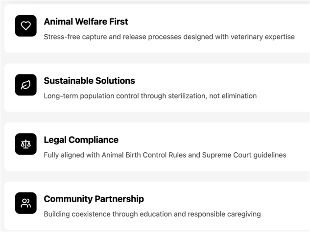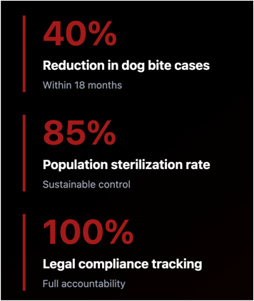 An urban management platform designed to bring structure, transparency, and accountability to street dog management – without compromising on compassion.